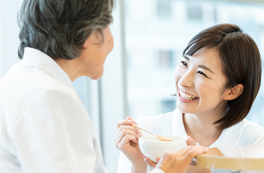 - 必要な方には食事介助を行いながら、楽しく会話を交えてリラックスしたひとときを提供します。